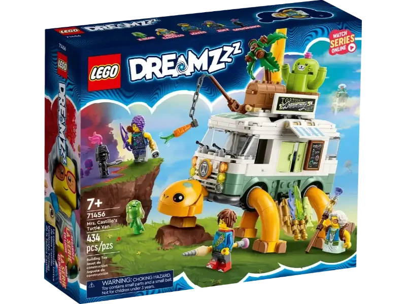 Laat kinderen van 7 jaar en ouder op avontuur gaan in de Dromenwereld met mevrouw Castillo, Mateo en Zoey in deze LEGO® DREAMZzz™ Mevrouw Castillo’s schildpadbusje (71456) bouwset. De set is gebaseerd op de spannende tv-serie DREAMZzz en biedt 2 manieren om een geweldig voertuig te bouwen. 1 busje, 2 manieren om te bouwen